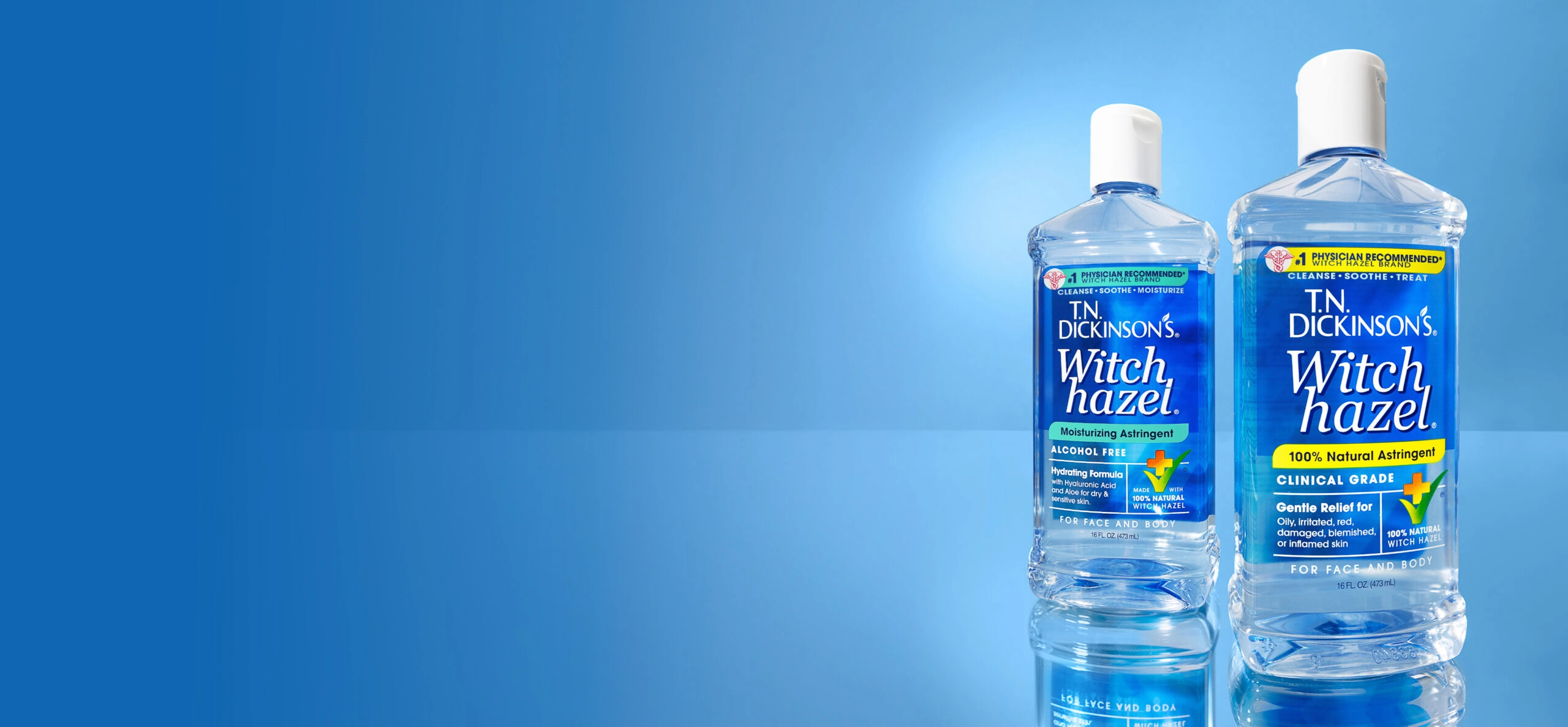 T.N. Dickinson’s is the only 100% natural witch hazel effective enough to cleanse, soothe, and treat just about anything—from head to toe—and gentle enough to use every day. With one powerful solution, you can address a wide range of dermatological needs for your family.